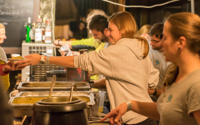 Na festivalu jsou k prodeji snídaně, obědy i večeře. Hlavní catering na obědy a večeře zajišťuje brněnský Klub cestovatelů. Nabízí i vegetariánskou variantu. Můžete si tedy na hlavním náměstí kdykoliv něco koupit. Na pití jsou k dispozici alko i nealko nápoje. Cena hlavního jídla cca 150–200 Kč.
